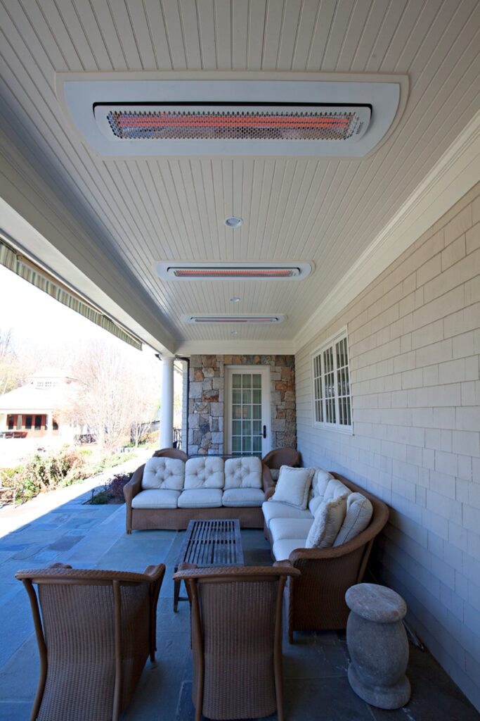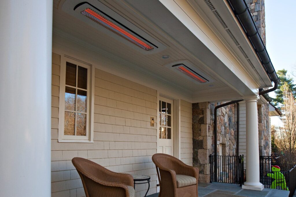 Für den Eigentümer dieses eleganten, traditionellen Wohnhauses war es wichtig, die Vorteile der Natur in Neuengland nutzen zu können. Ein wichtiger Faktor bei der Entscheidung für weiße Tungsten Smart-Heat-Elektroheizungen (6000 W) war, dass die schönen Außenbereiche auch nach der warmen Jahreszeit genutzt werden können. In Kombination mit den drahtlosen Dimmer-Controllern und dem Unterputz-Einbausatz sind die Tungsten-Heizungen unauffällig, nahtlos und sicher.